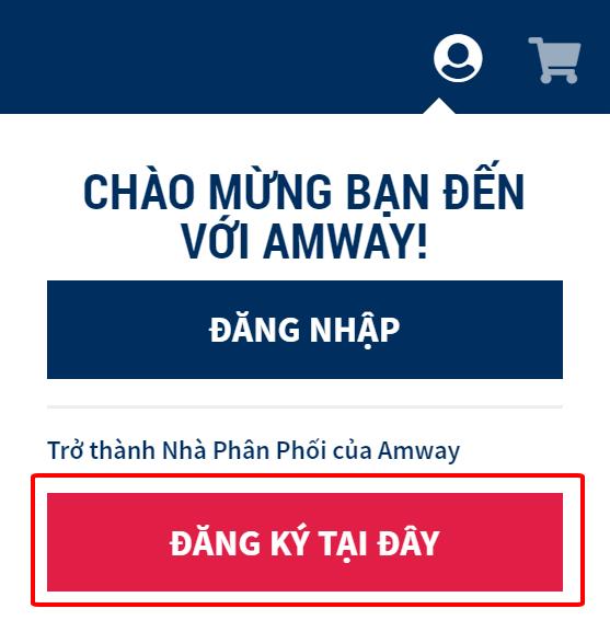 4. Đăng nhập vào trang https://www.amway.com.vn/ chọn biểu tượng hình đầu người ở góc trên bên phải và chọn ĐĂNG KÝ TẠI ĐÂY