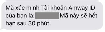 14. Vào website https://www.amway.com.vn/ để tạo mã đăng nhập Amway ID bằng số điện thoại di động. Công ty sẽ gửi tin nhắn xác thực số điện thoại. Nhập 6 mã số xác thực